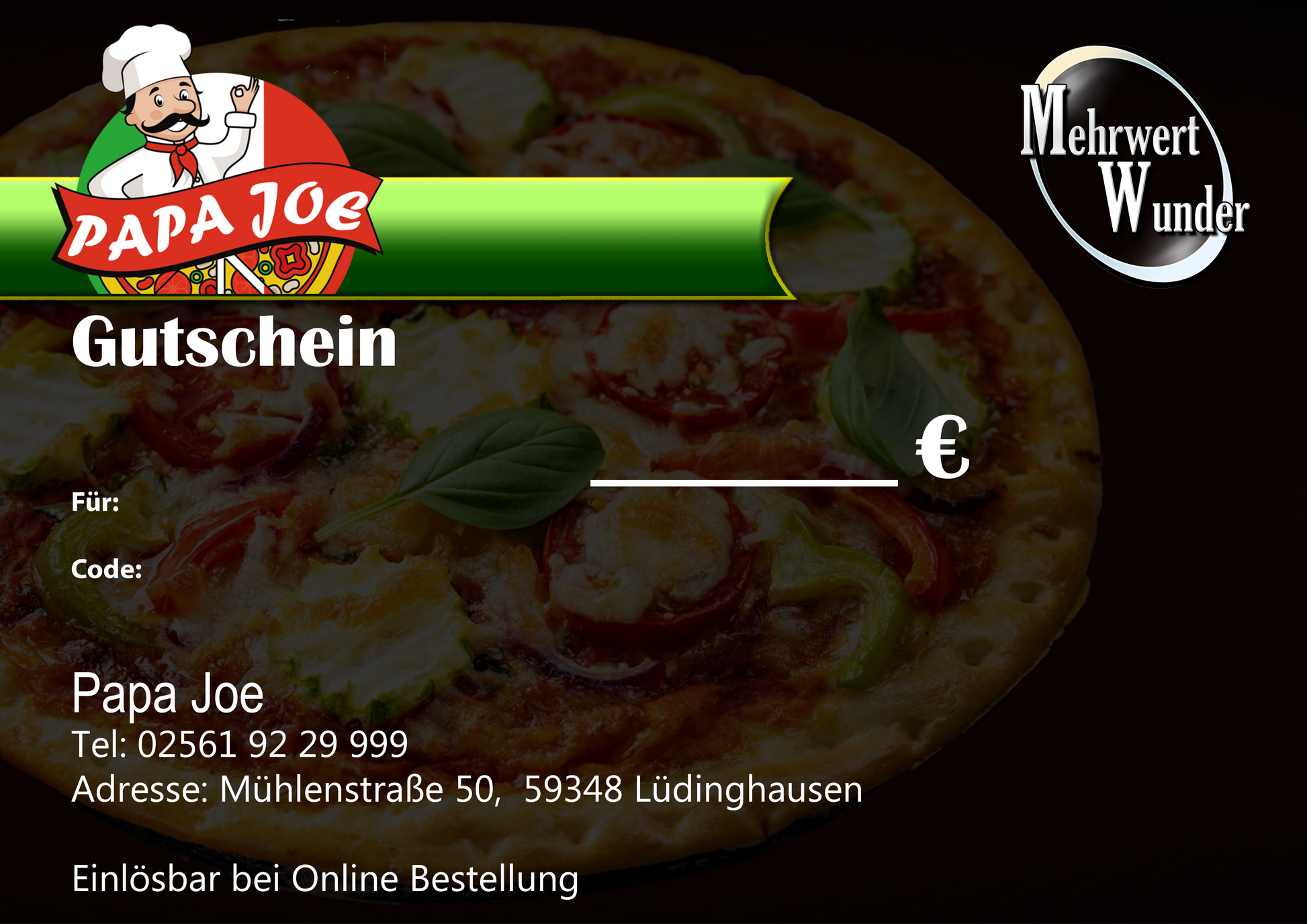 Herzlich Willkommen in Lüdinghausen bei PapaJoe Pizza, wir freuen uns auf deine Bestellung mit viel Leidenschaft bereiten wir die frische und vielfältige Speisen zu.
